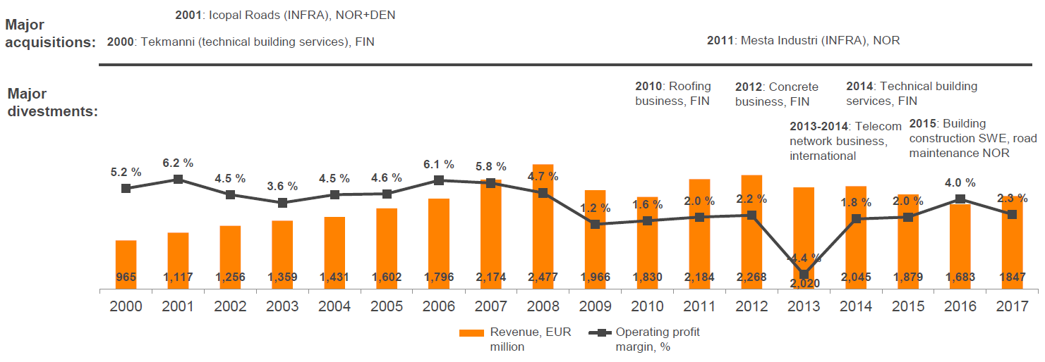 • Merger of YIT Corporation and Lemminkäinen Corporation in 2018
